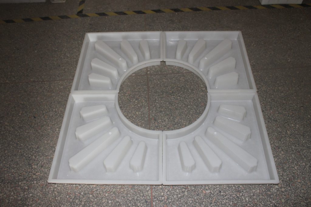 太陽型水泥樹圍模具主要采用了PP聚丙烯塑料為原料,經(jīng)注塑加工完成。主體結(jié)構(gòu)由四塊拼接組成,由于塑料模具表面由類似陽光一樣的線條設(shè)計,遂得名太陽型樹圍模具。不要小看這一條條的線條設(shè)計,除了在美觀結(jié)構(gòu)上有所表現(xiàn),最為關(guān)鍵的是在實際成品的空隙之處方便綠草生長,增強土壤結(jié)構(gòu),對于樹木的保護(hù)更為有力。