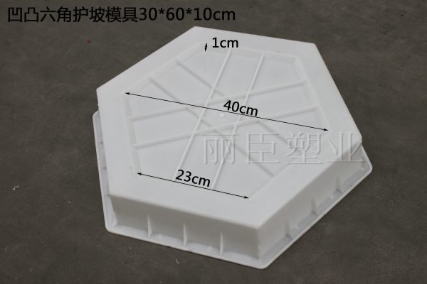 除此樣式的六角護坡磚塑料模具之外,麗臣塑業一樣提供其他樣式用途的護坡磚模具。比如用在高鐵高速線路上的拱形護坡磚模具,用在河道及堤壩附近的水利連鎖護坡磚模具,又或是構件各種生態系統的生態護坡磚模具等等。