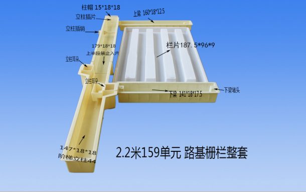 3.路基護欄塑料模具欄片尺寸:187.5*96*9CM。