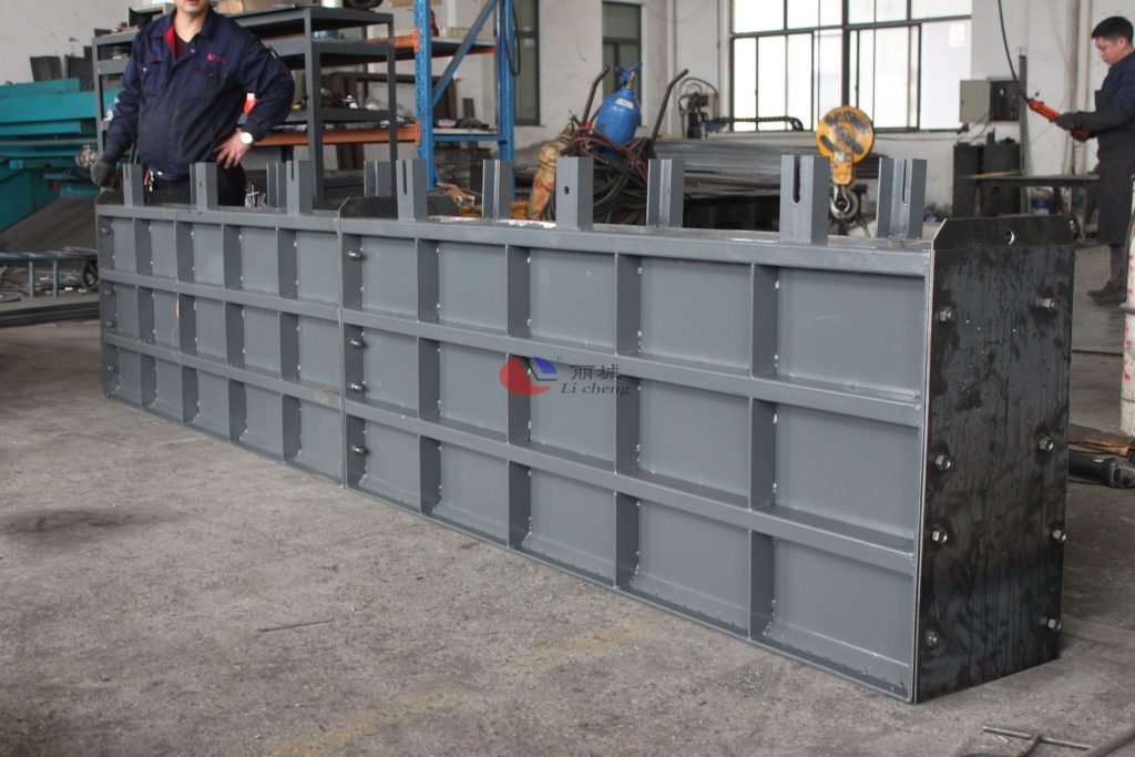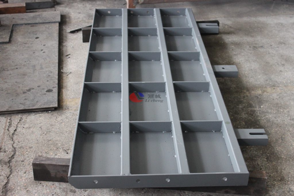1.擋土墻鋼模具欄片部分,經(jīng)裁剪焊接完成,是各部分中最為關(guān)鍵的組成部件。