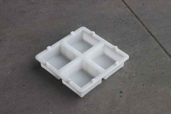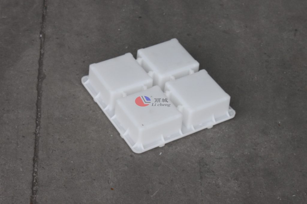 一脫四整體結(jié)構(gòu)的水泥磚模具,全新聚丙烯塑料材質(zhì),采用臥式注塑機(jī)半固定式注塑模具,單型腔熱流注塑成型。水泥磚塑料模具整體尺寸為22*22CM正方形結(jié)構(gòu)設(shè)計(jì),共分為4個(gè)10*10*5的水泥磚脫??臻g。