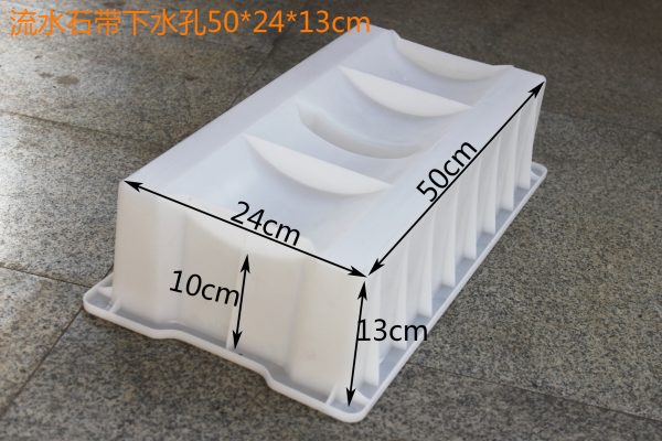 這款流水石蓋板模具的設計使用上大多數(shù)以市政基礎建設上使用為主,這款蓋板模具的澆筑出來的水泥預制品,呈現(xiàn)形狀為U型的流水槽,大多安裝在公路、公園道路兩邊。其主要的作用是能多方面聚集雨水、污水,用于積水的排放。