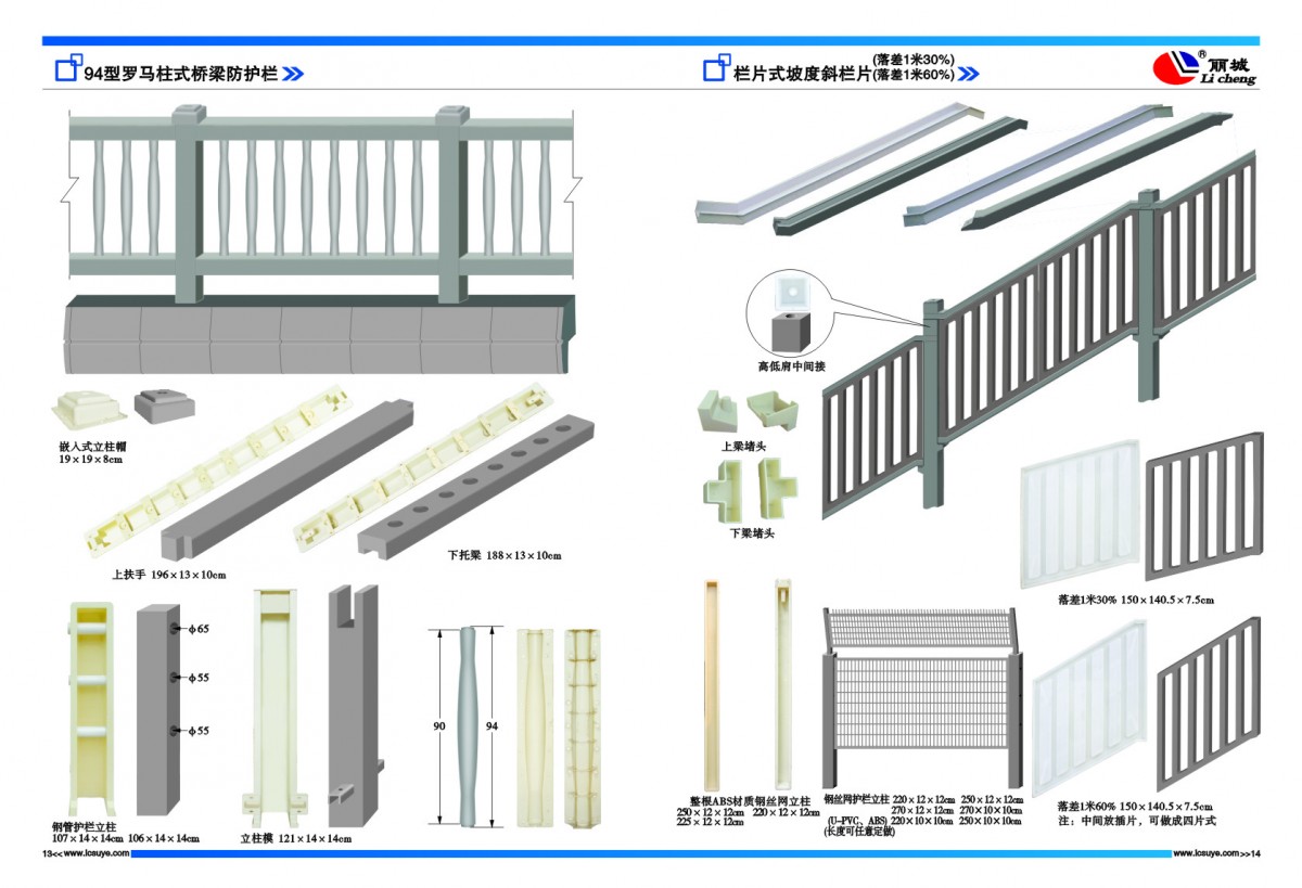 麗臣塑業主營產品:現澆塑料模板,六角護坡模具、高鐵水泥護欄模具、溝蓋板模具、路沿石模具、彩磚模具、井蓋模具等一系列水泥制品塑料、鋼模具及配套的機械設備配件等,如條紋磚條紋機、脫模機、高鐵護欄離心機、加料機等。