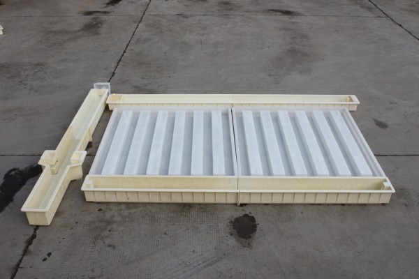 路基防護柵欄模具總共分為3個大型件及其他一些單體柵欄模具配件。
